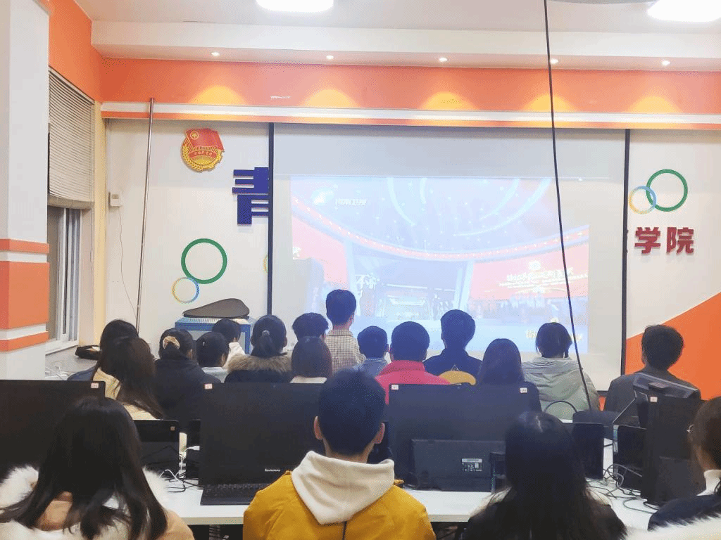 12月9日晚,河南广播电视台播出《铭记历史、走向复兴——全省县处级以下党员干部“四史”知识竞赛》节目,校团委组织兼职学生团干、学生党员代表、共青团员代表在综合实验楼大学生新媒体中心认真进行了收看。