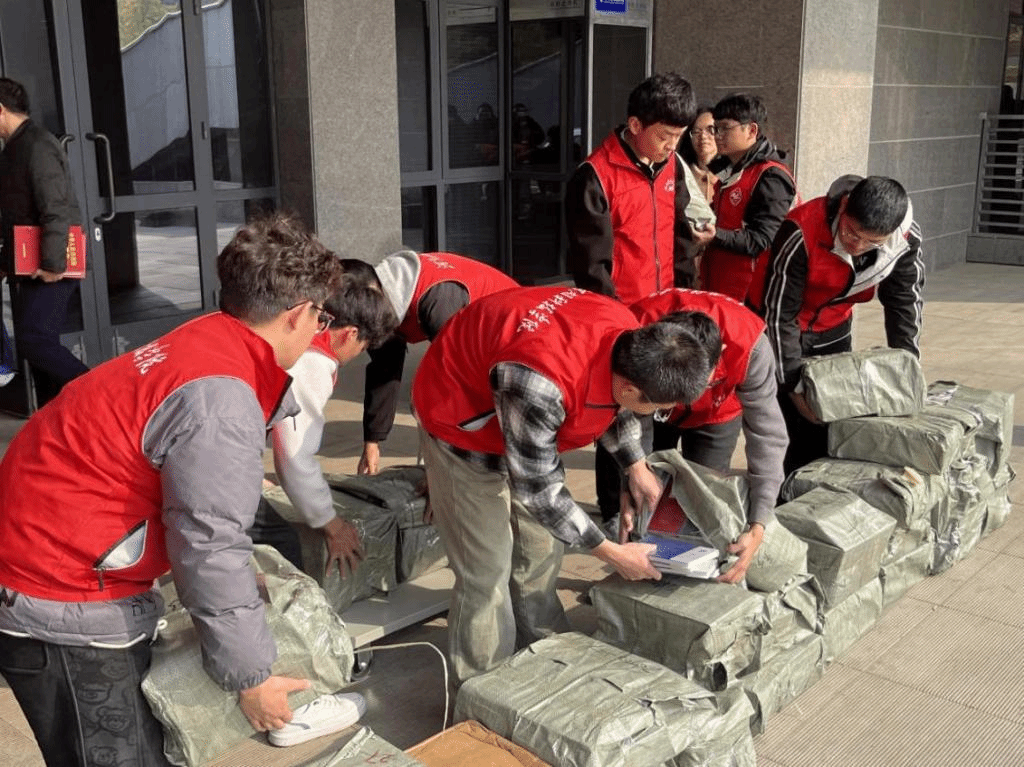 捐赠活动在图书馆南门启智广场进行,校团委负责人、图书馆负责人出席了活动仪式。20余名身穿红马甲的志愿者将2000余本图书清点准确、妥善运送到图书馆,交到图书馆工作人员手中。图书馆负责人对志愿者们的行为表示由衷的感谢和高度的赞赏,他表示,图书馆将保管、使用好这批图书,将志愿者们的爱心传递给全校师生。