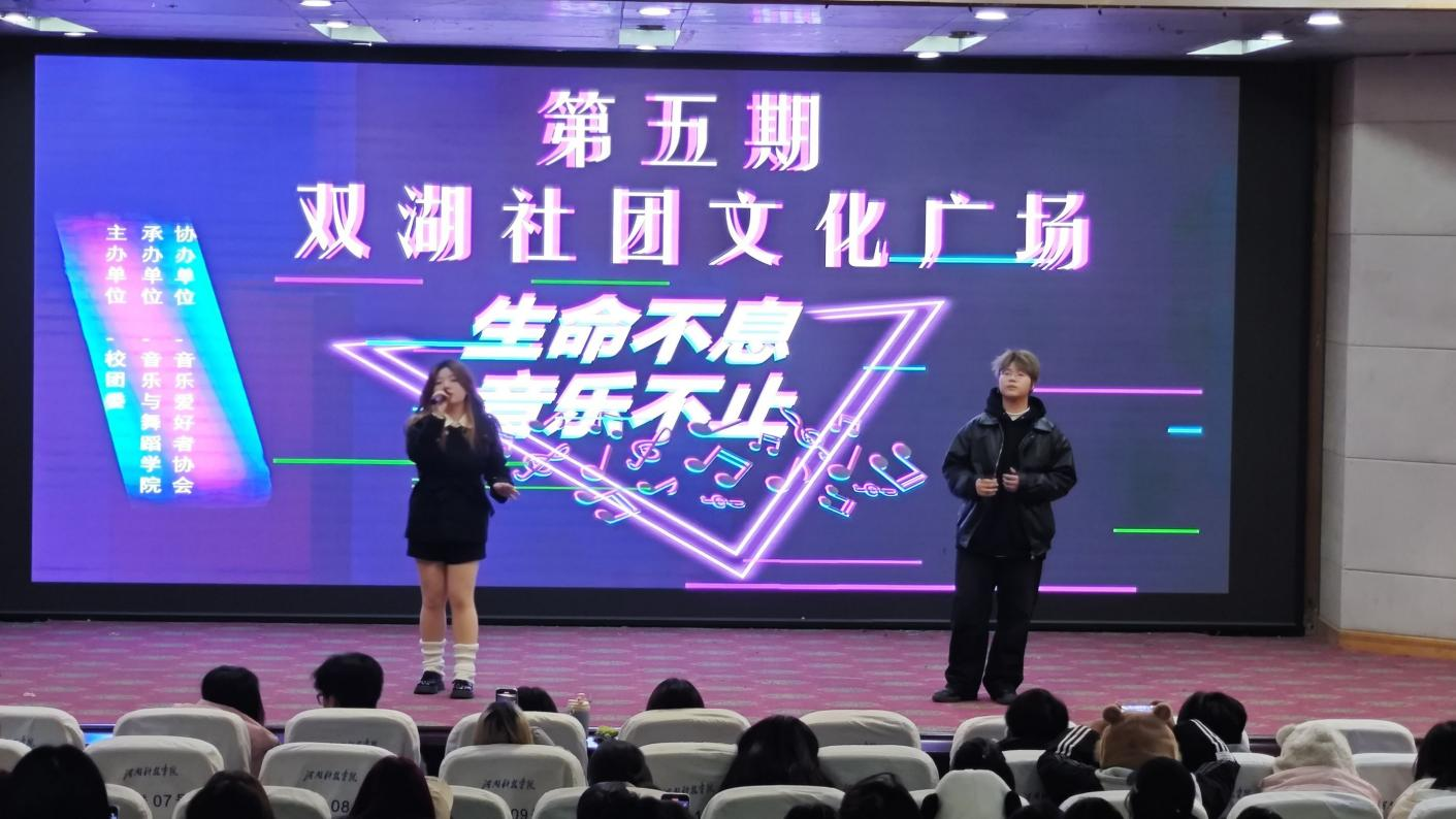 为深入学习贯彻习近平新时代中国特色社会主义思想,发挥学生社团“以美育人、以文化人”的校园文化氛围,引导学生社团健康发展,开展格调高雅、形式多样的社团活动。12月8日晚,由校团委主办、音乐与舞蹈学院承办、音乐爱好者协会协办的第五期双湖社团文化广场在图教201举办。