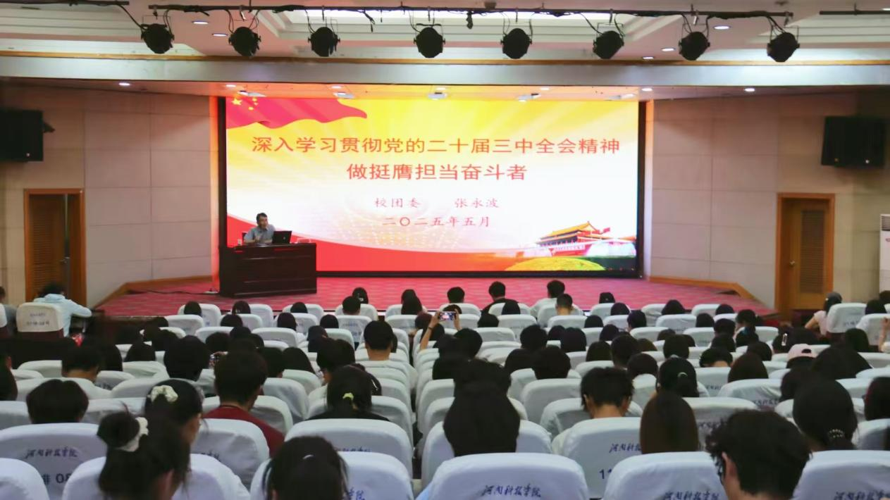 为进一步学习贯彻党的二十届三中全会精神,校团委于5月27日晚在图教201举办“深入学习贯彻党的二十届三中全会精神,做挺膺担当奋斗者”专题报告会,校团委书记张永波为全校“青马工程”培训班学员和2024级团学干部作专题报告。