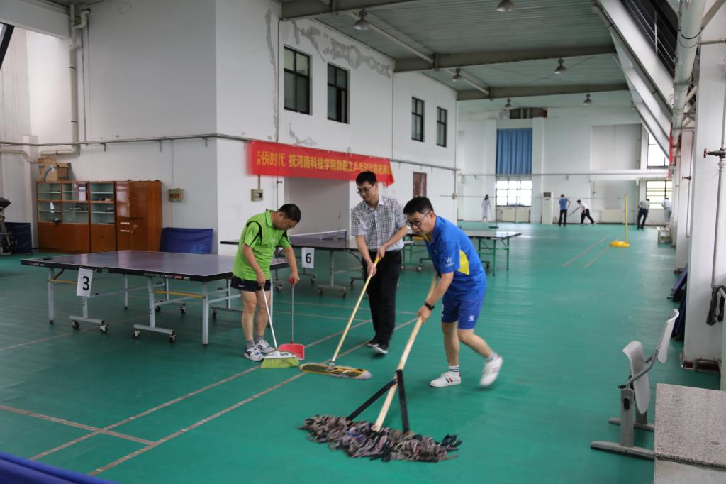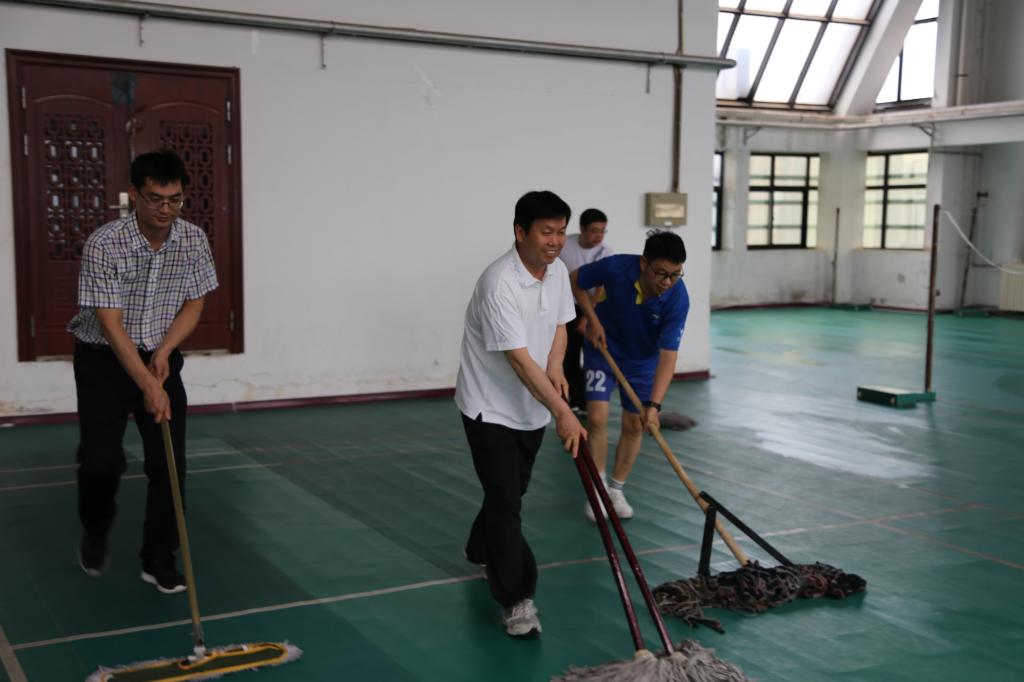 下午五点,党员志愿者们带着扫帚、拖把、垃圾斗、水盆、抺布等工具来到教工活动中心,分小组、分区域开展卫生打扫和清理工作。大家不顾炎热,清扫垃圾、去除污垢、清理积水,认真细致地铲除垃圾死角,充分发挥党员不怕苦,不怕累的精神。经过一个多小时的劳动,教工活动中心环境干净整洁、焕然一新。