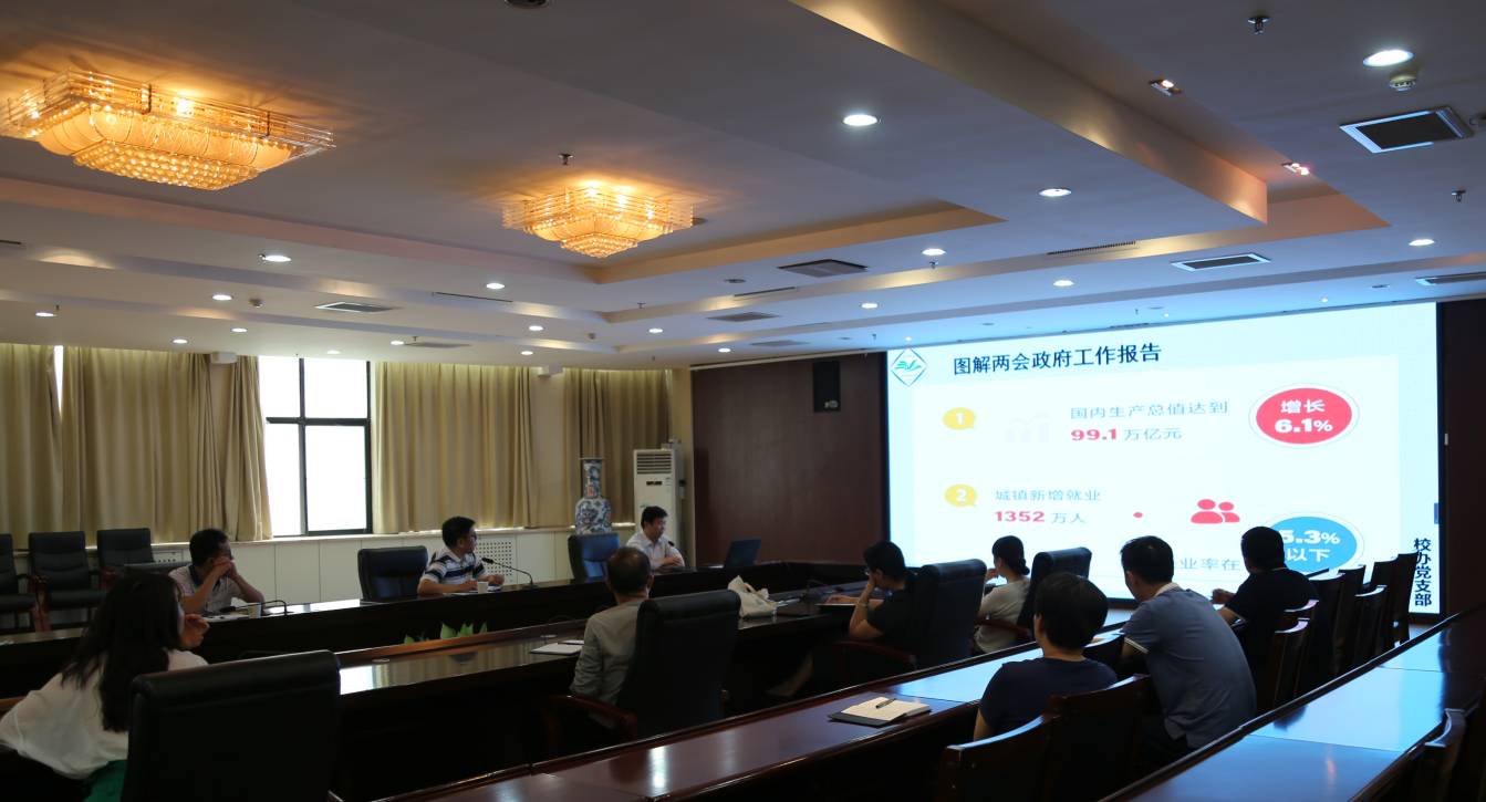 为深入学习全国“两会”精神,进一步增强全体党员的政治理论素养,6月30日下午,校长办公室党支部在办公楼206会议室召开党员大会,集中学习国务院总理李克强在第十三届全国人民代表大会第三次会议上的政府工作报告。会议由党支部副书记刘弘主持。