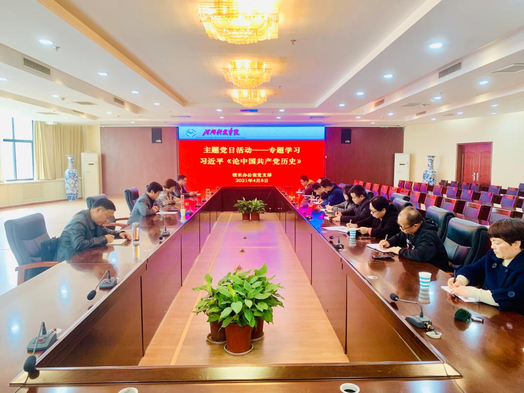 4月8日下午,校长办公室党支部在行政楼206会议室开展主题党日活动,深入学习《习近平<论中国共产党历史>》,校长办公室党支部全体党员参加会议,会议由党支部书记张彦军主持。