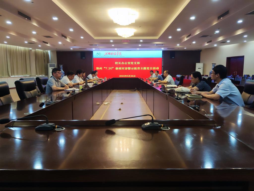 为深刻汲取郑州“7·20”特大暴雨灾害追责问责案件教训,进一步提升党员干部的风险意识和防汛应急处置能力,5月26日下午,校长办公室党支部在行政楼206会议室开展郑州“7·20”特大暴雨灾害追责问责案件警示教育主题党日活动。会议由校长办公室党支部书记张彦军主持。