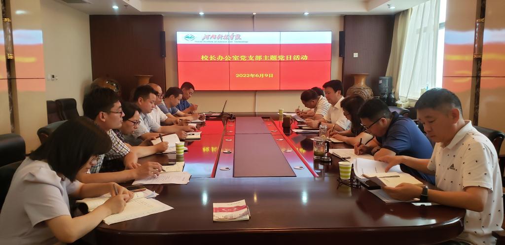 6月9日下午,校长办公室党支部在办公楼1111会议室开展“学习讲话精神 勇于担当作为”主题党日活动,深入学习贯彻省委书记楼阳生、副省长武国定到校调研时讲话精神,支部全体成员参加会议。会议由党支部书记张彦军主持。