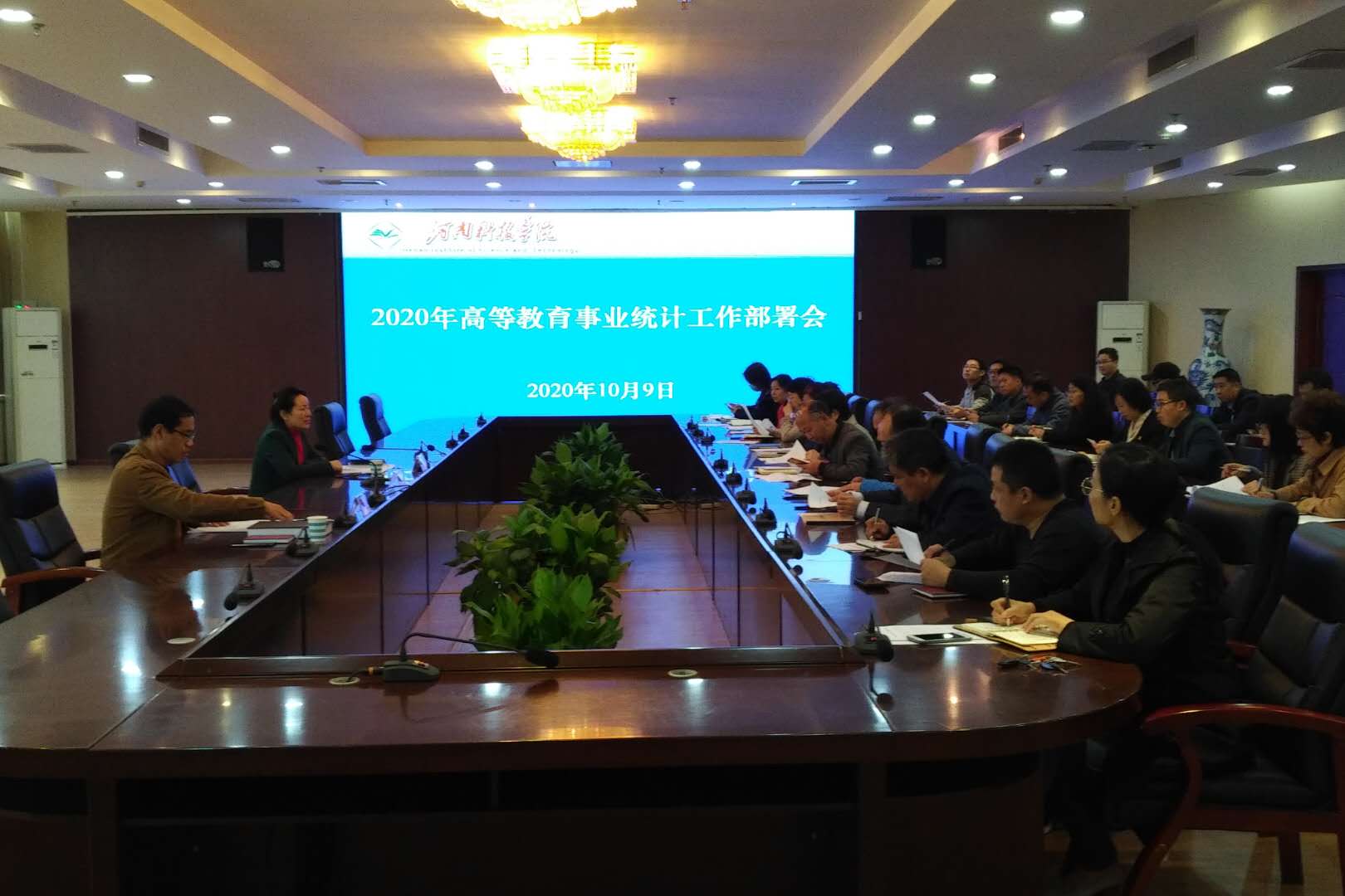 10月9日星期五上午,在行政楼二楼206综合会议室,发展规划处组织召开了2020年高等教育事业统计工作安排部署会,相关单位负责人及信息统计工作人员40余人参会。