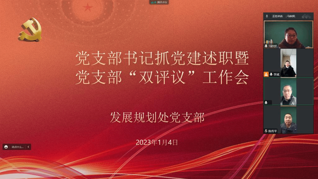 1月4日,发展规划处党支部通过网络会议形式组织开展党支部书记抓党建述职暨党支部“双评议”工作会。发展规划处全体党员参加会议。会议由发展规划处党支部书记主持。