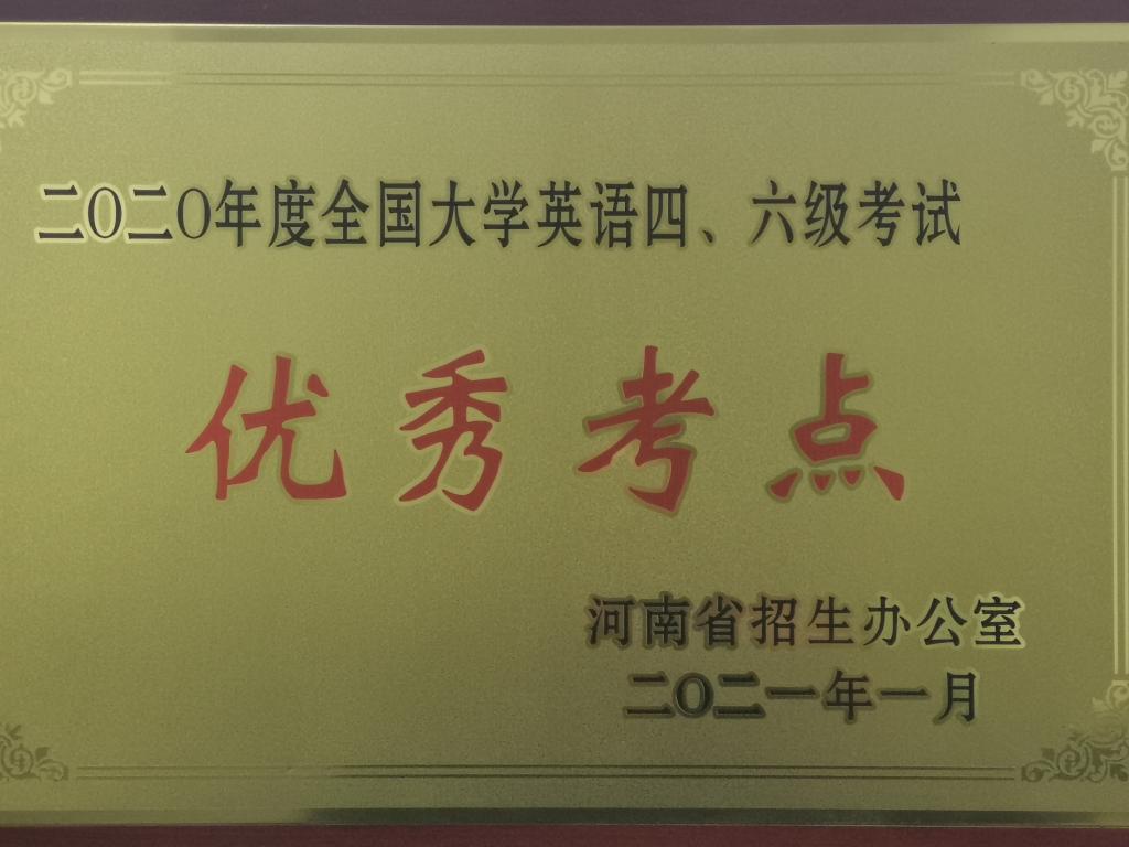经市招生考试机构推荐、河南省招生办公室评审,我校四、六级考点被评为2020年度全国大学英语四、六级考试优秀考点,教务处考试中心主任李军庆同志被评为2020年度全国大学英语四、六级考试先进工作者。