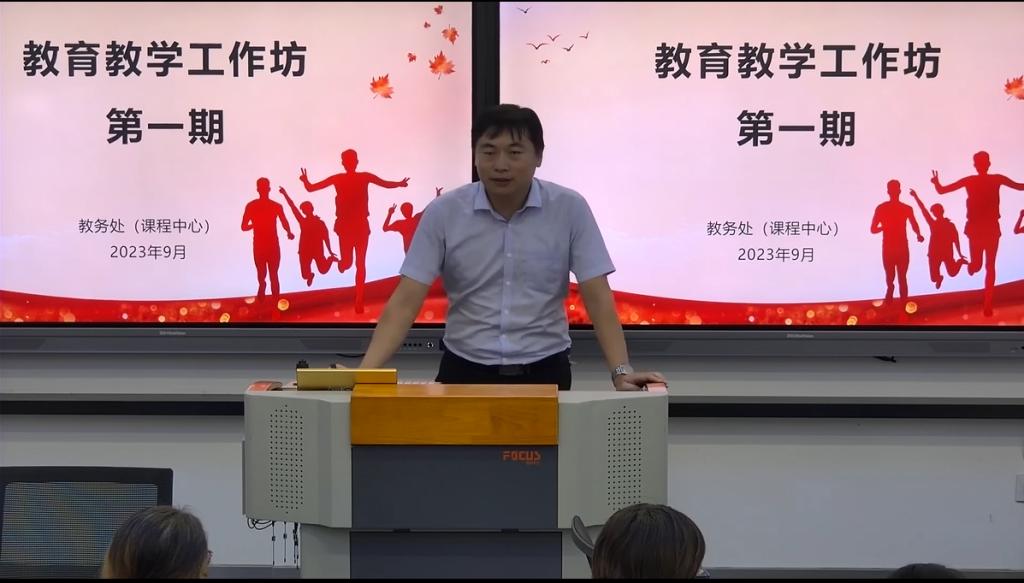 9月13日下午,教务处在9号楼智慧教室举办了教育教学工作坊第一期活动,本期聚焦“一流课程申报与建设”专题。活动邀请了超星集团课程总监孔鑫凯女士作专题报告。活动由教务处副处长兼课程中心副主任苏喜庆主持,各级各类一流课程负责人和教师代表参加了工作坊活动。