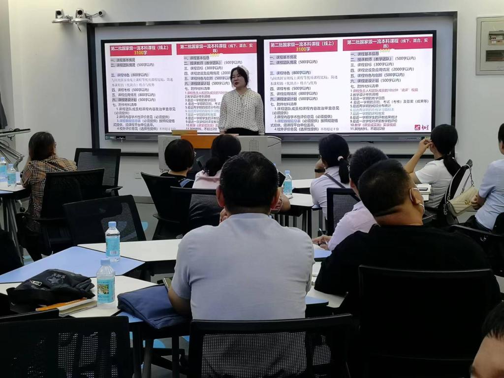 孔鑫凯总监在报告中主要向与会老师介绍了一流课程申报书的填写技巧和攻略、教学设计创新理念、信息技术赋能教学等内容。她还针对不同类型的一流课程建设标准,进行了案例剖析和申报经验分享,为参与活动的教师提供了有针对性的指导。