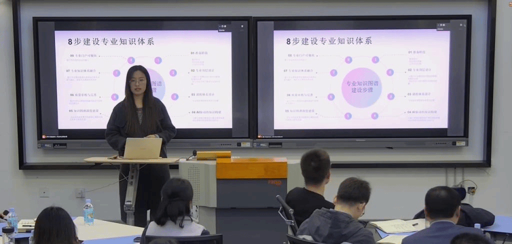 随后,张静老师带来了“人工智能和数字化背景下如何加强专业教育”的精彩分享。她重点探讨了知识图谱在课程建设中的重要作用,并从学生、教师、管理三个层面详细解读了知识图谱的建设方案。张老师还深入分析了如何通过构建课程知识图谱和智能化教学促进个性化教学,推动专业结构优化调整,以及如何利用学科专业知识图谱的提质培优来提升整体教学质量。她的分享使与会老师们对数字化教育在提升专业教学质量和促进学生个性化发展方面有了更深刻的认识。