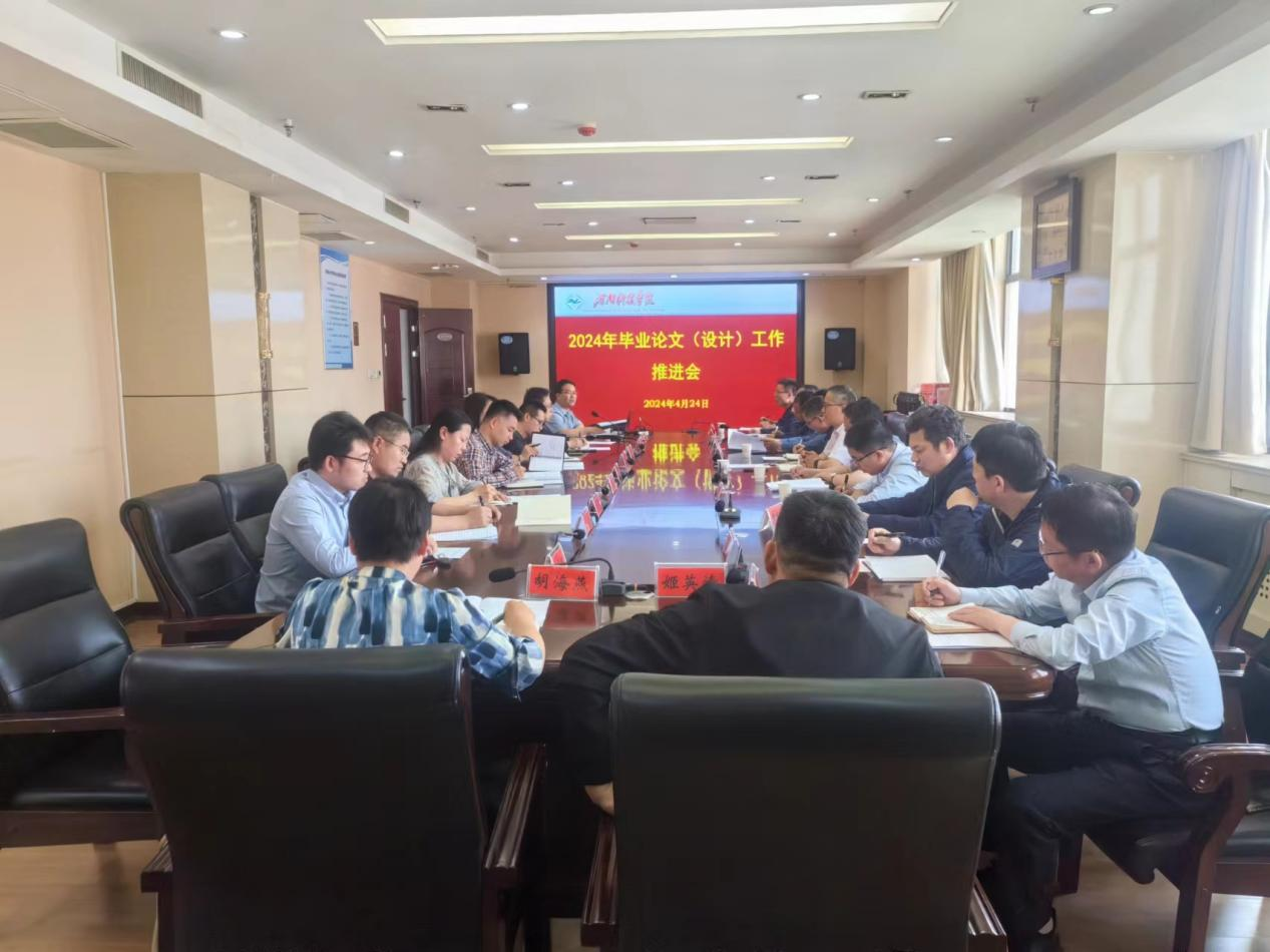为了进一步加强本科生毕业论文(设计)质量监控,完善本科生培养的管理和监督体系,提高学位授予质量,4月24日下午,学校在办公楼901会议室召开2024届本科毕业论文(设计)工作推进会。教务处处长杨宾峰、各学院院长(副院长)和教务处相关人员参加了会议,会议由教务处副处长赵高丽主持。