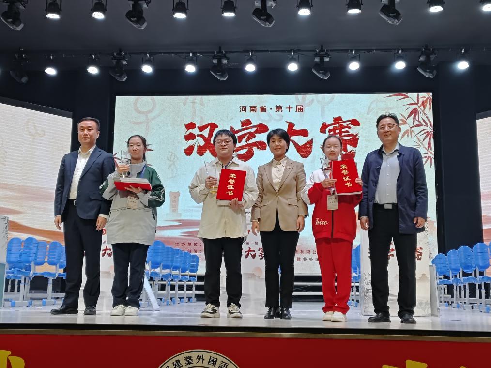 近日,由河南省教育厅主办,河南日报社、中国移动通信集团河南有限公司、濮阳市教育局共同承办,河南省语言学会协办的2024年第十届河南省汉字大赛在濮阳建业外国语学校举行。我校文法学院陈利沙、曹威和外国语学院郭衡宇三名同学参加了比赛,曹威同学荣获高校组亚军,郭衡宇同学荣获高校组一等奖,陈利沙同学荣获高校组二等奖;文法学院刘晏齐老师获最佳辅导奖。