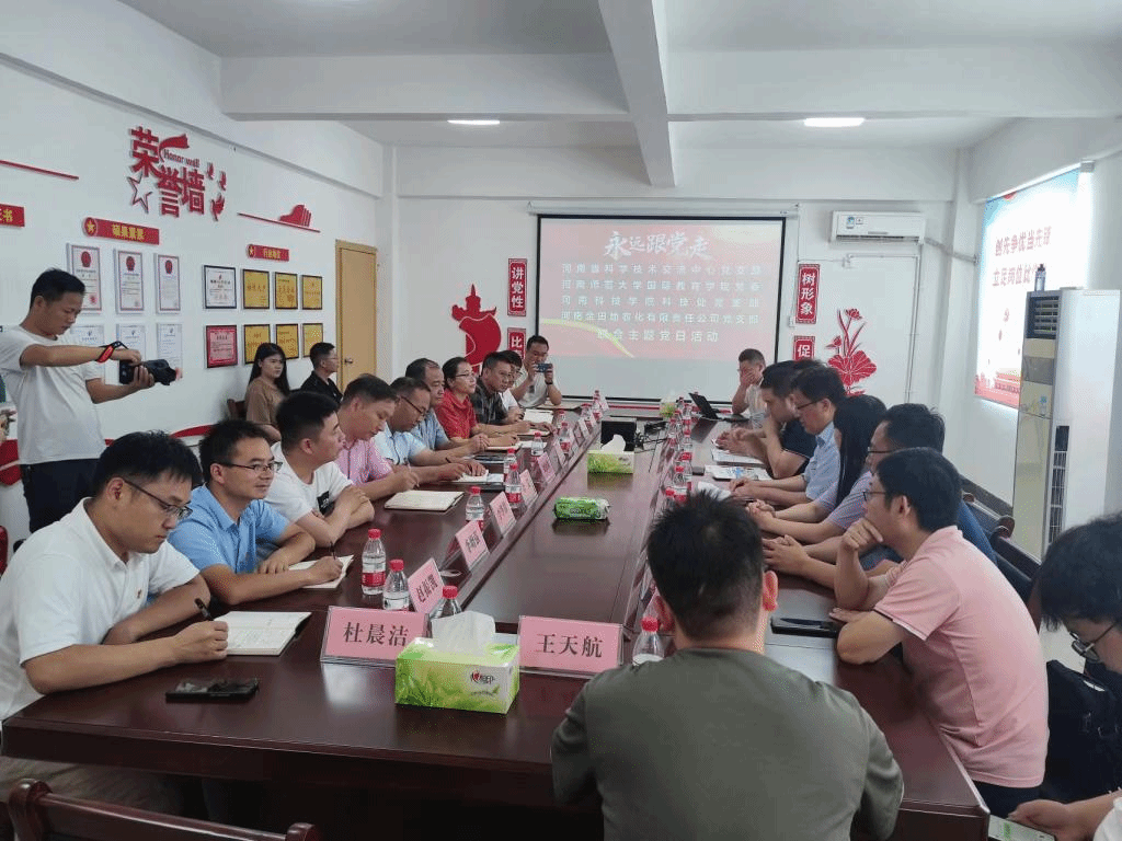 为进一步学习贯彻习近平新时代中国特色社会主义思想,扎实推进科技创新工作,7月11日,科技处党支部与河南省科学技术交流中心党支部、河南师范大学国际教育学院党委、河南金田地农化有限责任公司党支部联合开展“踏寻足迹感初心 重温讲话担使命”主题党日活动。