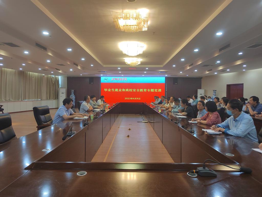 为深入学习贯彻落实习近平总书记重要决策指示,把主题教育作为事关全局的大事紧抓不放,统筹推进近期各项工作落地、落实、落细,6月8日上午,党委学工部、学生处在行政楼206会议室举行毕业生就业和安全教育专题党课,相关单位负责人、学生处全体工作人员、各二级学院团委书记及负责毕业生工作的辅导员参加会议。