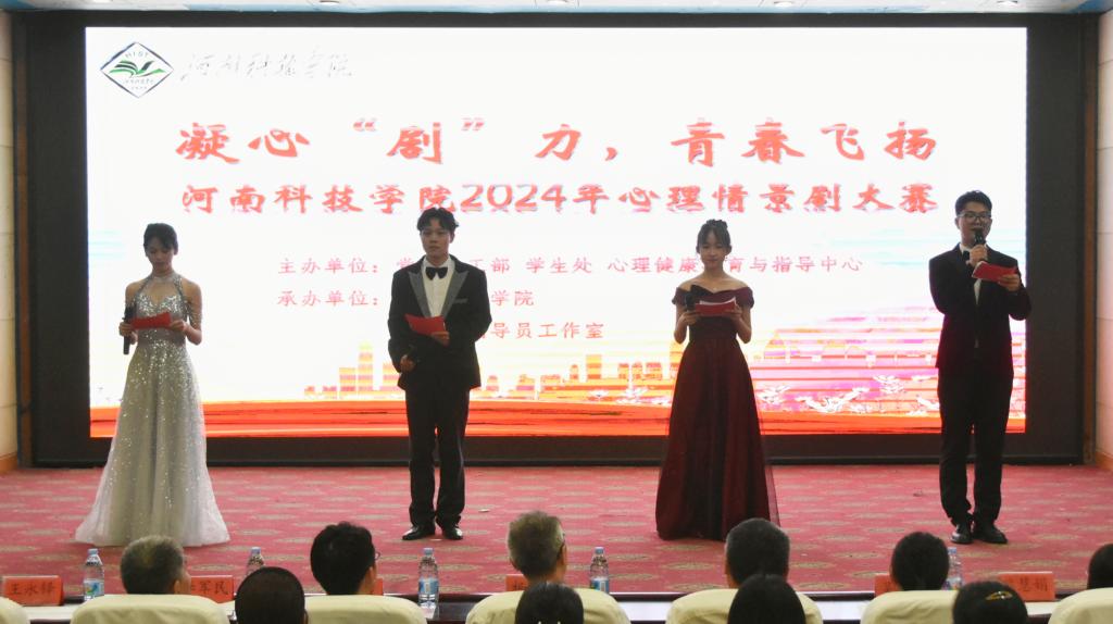 5月31日,河南科技学院2024年校园心理情景剧大赛在图教201举办。比赛由党委学工部、学生处,心理健康教育与指导中心主办,数学科学学院承办。教务处处长杨宾峰,党委学工部部长、学生处处长冀红举观看了比赛。校团委书记张永波、马克思主义学院党委书记吴玲玲、数学科学学院党委书记李军民、心理健康教育与指导中心副主任王永铎、音乐与舞蹈学院党委副书记熊慧娟担任评委。
