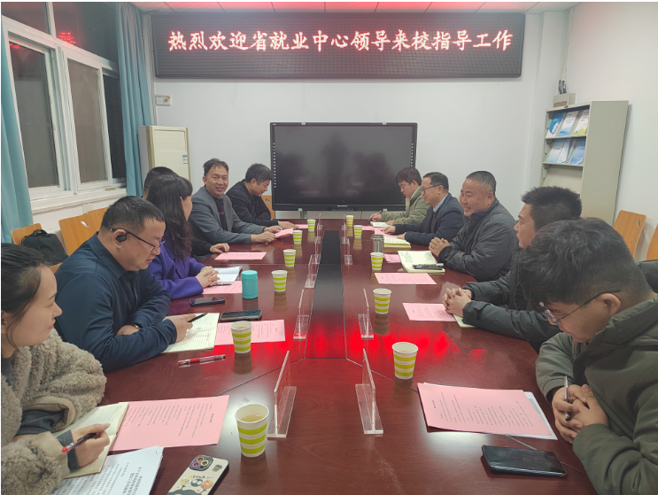 李胜利介绍了本次调研的相关情况,明确表示此次调研旨在推动高校就业指导实践教学场地建设,提升高校就业指导课程实效和毕业生就业能力,对我校就业工作给予充分肯定,特别是在高校就业指导实践教学场地建设方面走在了全省高校前列。