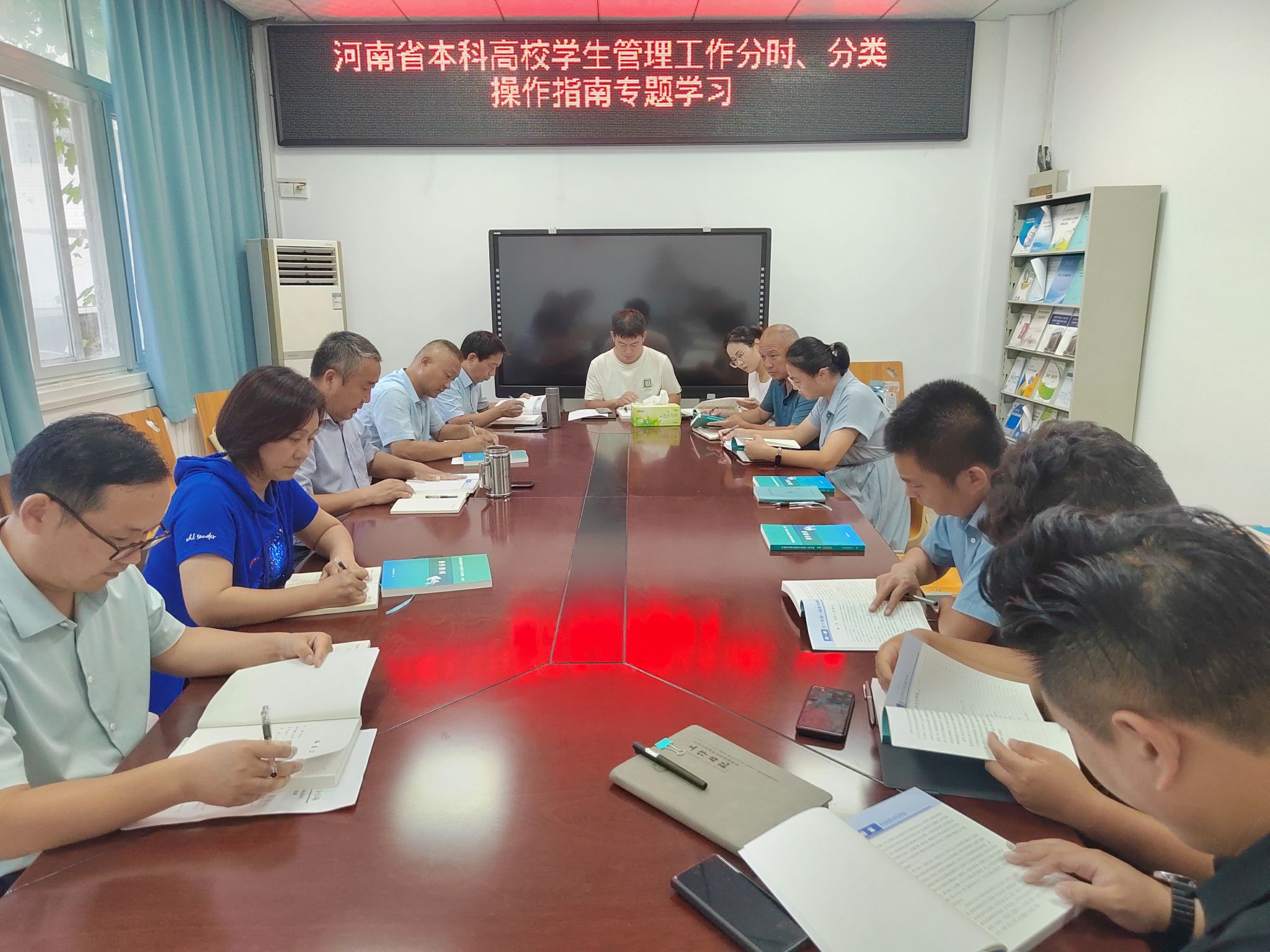 为进一步提升学生管理工作规范化、精准化水平,增强辅导员队伍专业素养与职业能力,近日,校党委学工部、学生处先后五次组织召开专题学习会,集中学习《河南省本科高校学生管理工作分时、分类操作指南》。