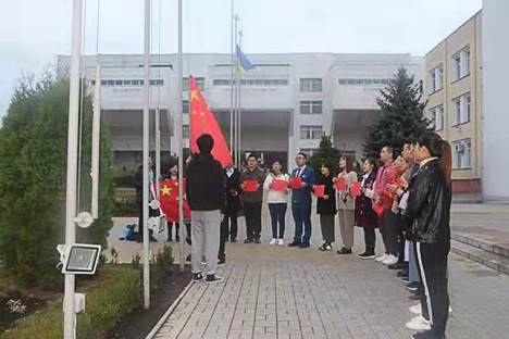 当地时间10月1日清晨7:30分,我校与乌克兰苏梅国立农业大学国际联合研究生院的2019级53名研究生在学校主楼前举行升国旗仪式,为祖国歌唱,共庆新中国70华诞。