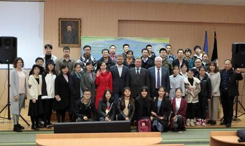 本次活动得到了苏梅国立农业大学领导的高度重视和在校师生的广泛关注。中午13时,苏梅国立农业大学Valerii Zhmailov副校长、Yurii Danko副校长、Mykola Sokolov副校长及相关教师出席了专门为中国留学生举办的国庆联欢会。Valerii Zhmailov副校长发表了热情洋溢的讲话,表达了对新中国70华诞的诚挚祝福,祝愿在中国共产党的领导下,中国未来更加繁荣昌盛,同时,他也祝福在这里学习的中国留学生节日快乐、学习进步。