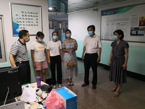 化学化工学院领导和老师到实验室了解了学生学习、生活,鼓励学生安心开展科学研究。