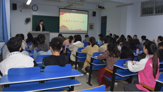为庆祝建党100周年,4月22日晚,由研工部、研究生处主办,研究生会承办的首期“研究生论坛”在9号楼201教室如期举行。研工部部长、研究生处处长赵明富,辅导员费渔林老师及学生代表40余人参加论坛。研究生会学习部部长李凯敏主持论坛。