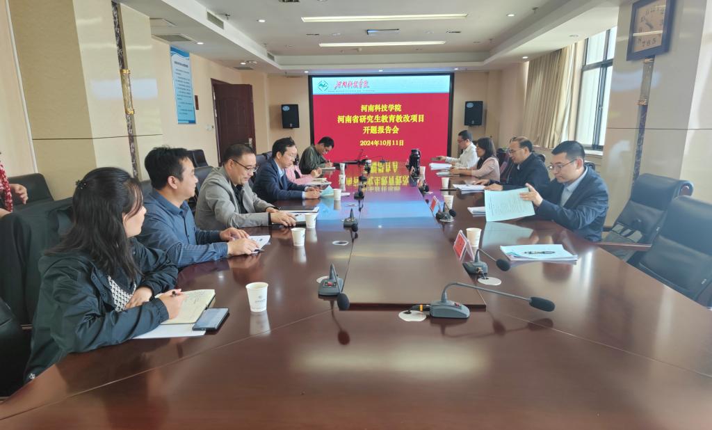10月11日,我校在办公楼901会议室举行了河南省研究生教改与实践重大重点项目开题报告会。河南理工大学研究生院院长陈俊杰、华北水利水电大学研究生院院长张华平、新乡医学院研究生学院院长姬广军、中原工学院研究生处处长郑慧凡、新乡学院研究生处处长贾蒙担任评议专家,我校获批2023年度河南省研究生教改与实践重大、重点项目负责人及团队成员参加会议。
