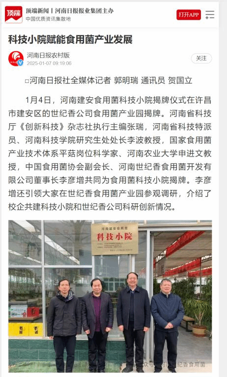 河南日报、今日头条、中原科技网等新闻媒体也对河南建安食用菌科技小院揭牌仪式进行了报道。