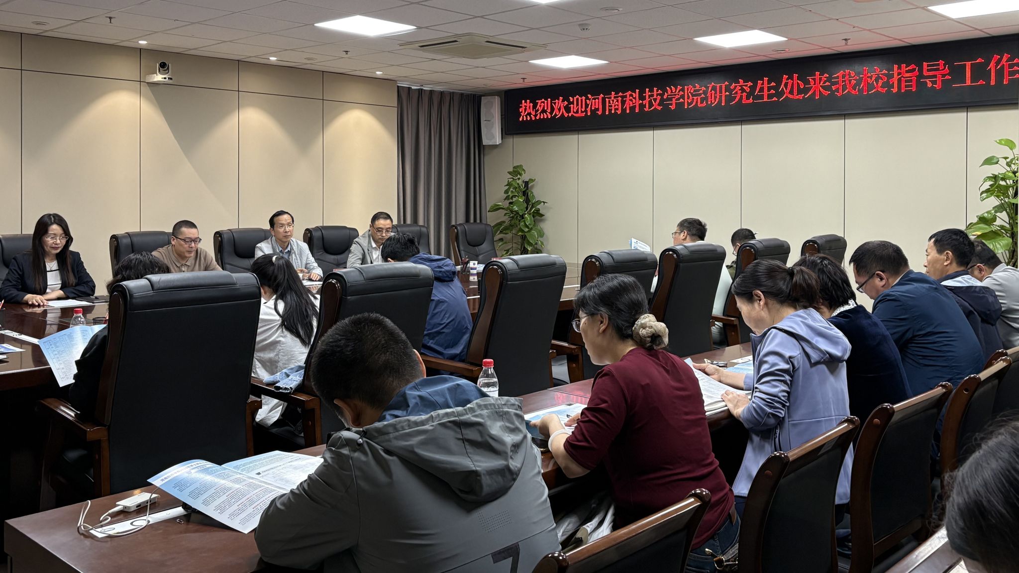9月18日,李波一行与安阳工学院发展规划处处长(研究生处)卢全伟、副处长赵亚东以及相关二级学院负责人进行了座谈交流。李波结合学校近年来的研究生教育改革成果,重点解读了2026年研究生招生最新政策,并就师生关心的专业方向、导师队伍、奖助体系等问题进行了现场解答。