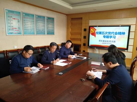 2月28日下午,招生就业处组织全体人员专题学习校第五次党代会精神。会议由处长巴新华主持。