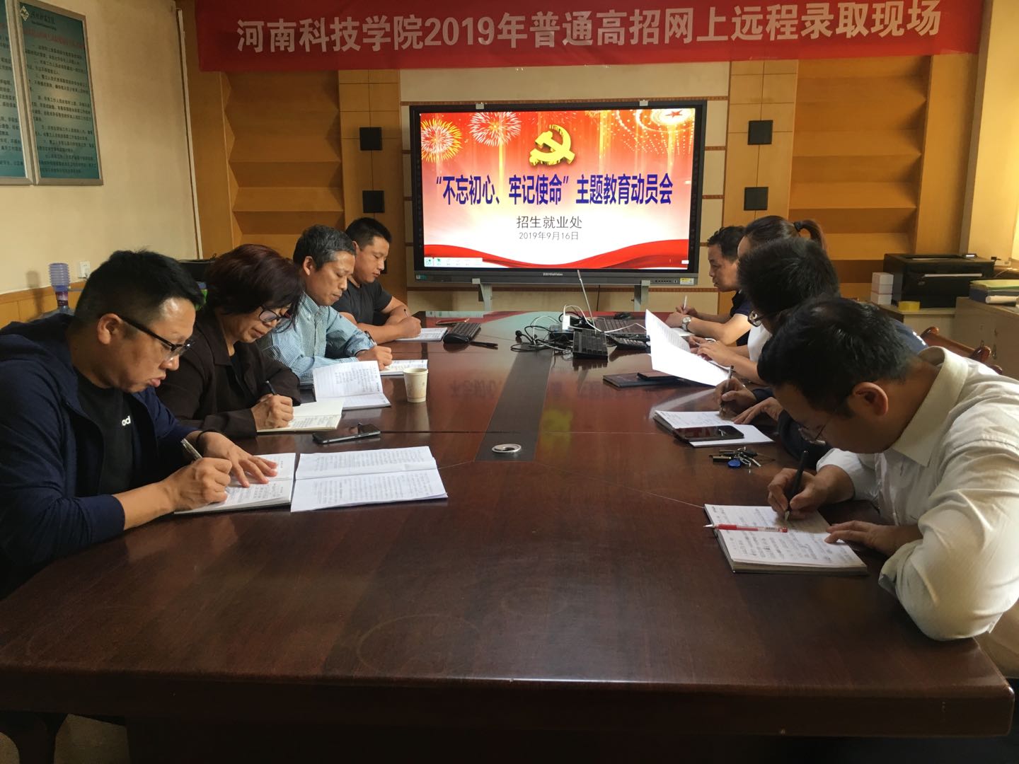 与会人员表示会自觉把思想和行动统一到中央、省委、学校党委的安排部署上来,牢牢把握主题教育“十二字”总体要求,坚决做到理论学习有收获、思想政治受洗礼、干事创业敢担当、为民服务解难题、清正廉洁作表率。通过主题教育,决心使招生就业处的各项工作迈向新的台阶。