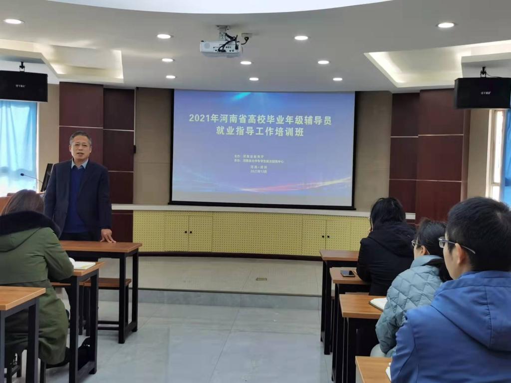 为提升我省高校毕业年级辅导员就业指导工作能力,12月7日,河南省教育厅在省就业服务中心举办“2021年河南省高校毕业年级辅导员就业指导工作培训班”。我校在招生就业处A300设分会场,组织全体毕业班辅导员和招生就业处相关人员参加了线上培训。