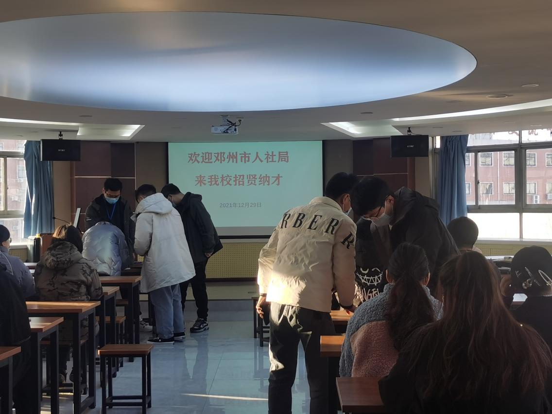 12月28日——12月30日,邓州市人社局带领下属单位邓州市农业技术推广中心来我校遴选人才,经过现场报名、面试、签约等程序,历经三天,顺利完成在我校的招聘工作。