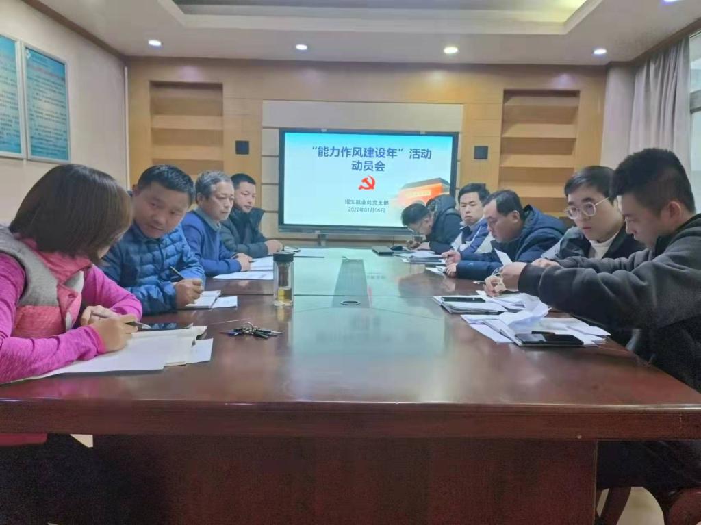 1月6日下午,招生就业处在A309会议室召开“能力作风建设年”活动动员会,全体工作人员参加会议。会议由支部书记巴新华主持。