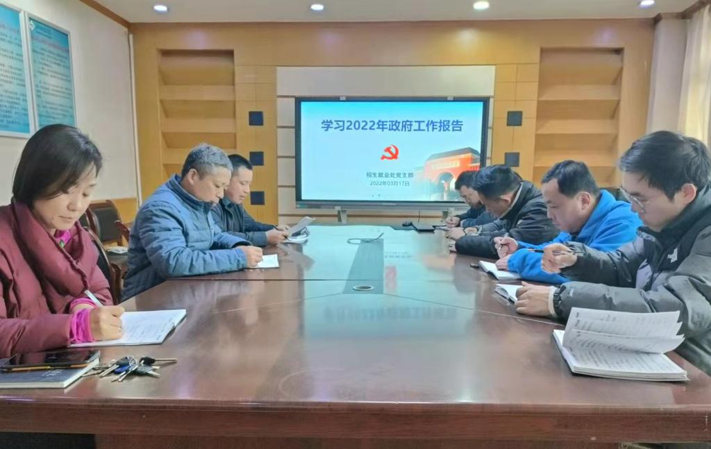 3月17日下午,招生就业处党支部在A309会议室组织学习2022年政府工作报告。会议由党支部书记巴新华主持。