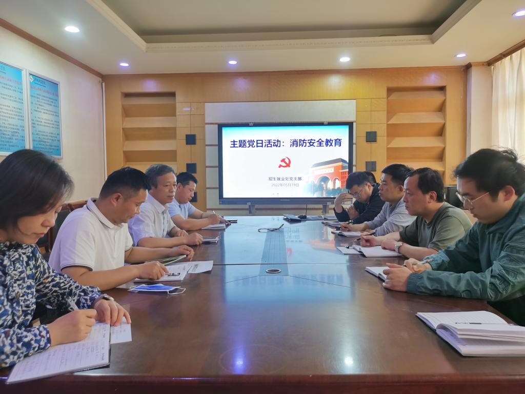 5月19日上午,招生就业处党支部在实验楼A309会议室召开“消防安全教育”主题党日活动,全体工作人员参加会议。