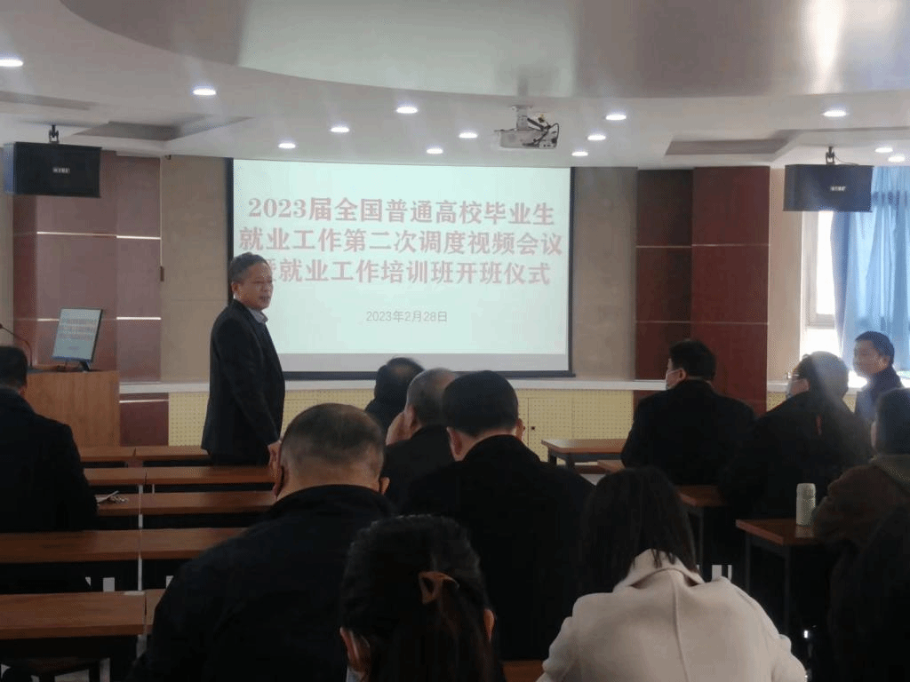 视频会议结束后,举行了就业工作培训班开班仪式。集中学习了《普通高校毕业生就业统计工作违规处理办法(试行)》,并对近期的就业工作进行了安排部署。