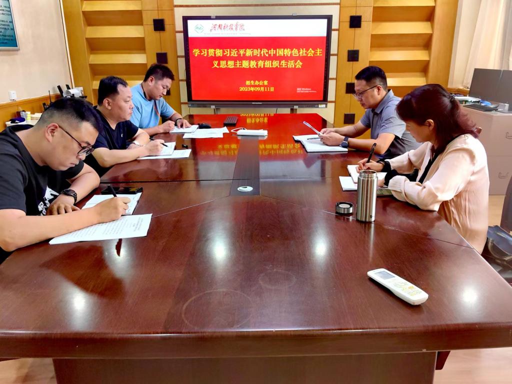 9月11日下午,招生办公室党支部在实验楼A段309会议室召开学习贯彻习近平新时代中国特色社会主义思想主题教育专题组织生活会,会议由招生办公室主任李刚主持。机关党委副书记贾洁到会指导并作了点评讲话。