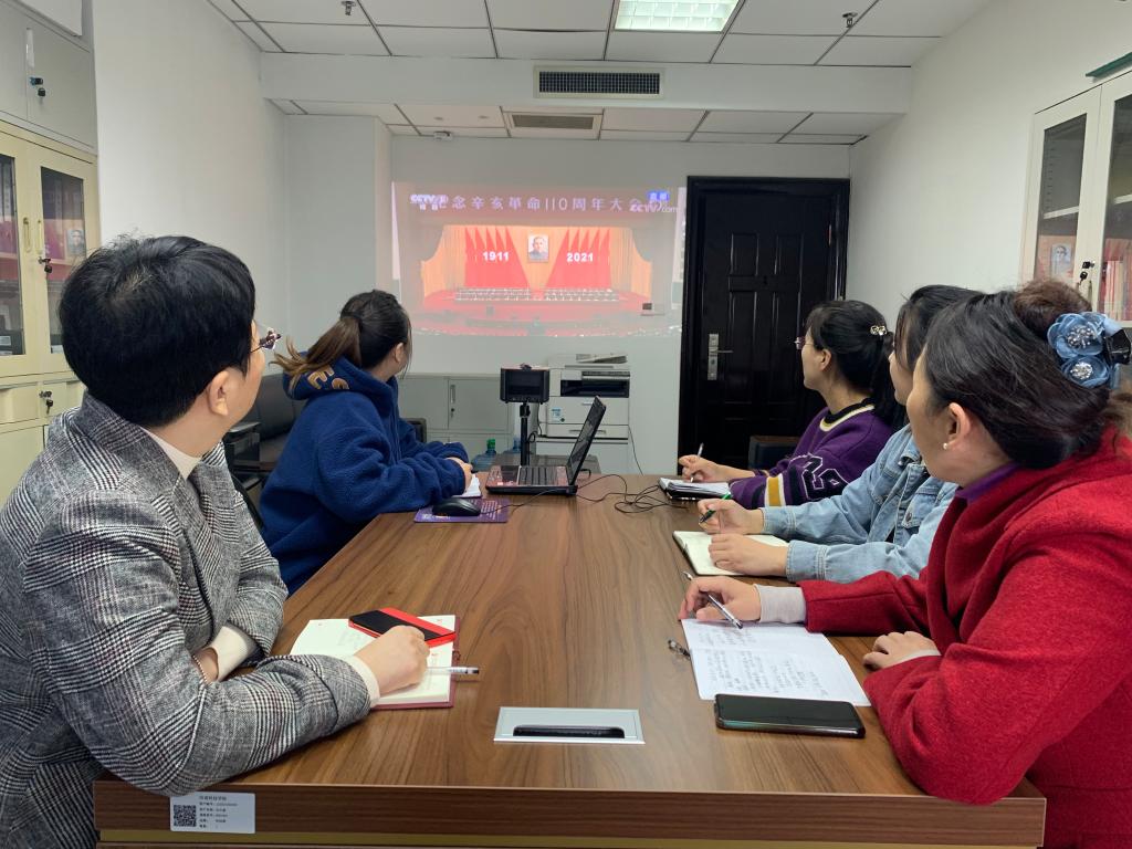 10月9日上午,纪念辛亥革命110周年大会在北京人民大会堂隆重举行。中共中央总书记、国家主席、中央军委主席习近平发表重要讲话。国际交流与合作办公室/港澳台事务办公室党支部全体党员共同观看大会直播盛况,纪念辛亥革命110周年。