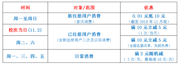 凡自愿下载使用“云闪付”APP的师生,将在不定期活动中享受更多优惠。