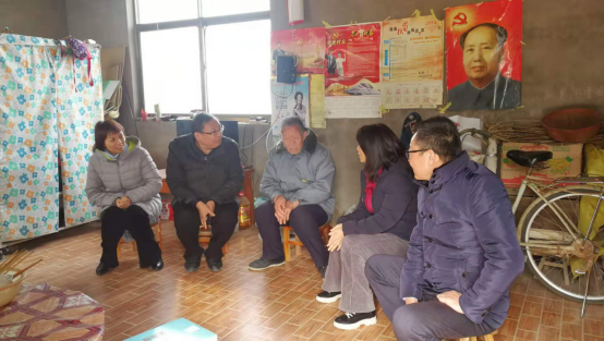 11月27日,第三党总支旦勇刚、刘明鹏、陈松玲、贾洁一行赴封丘县黄陵镇闫庄村对口帮扶贫困户杨忠岭家中走访慰问。