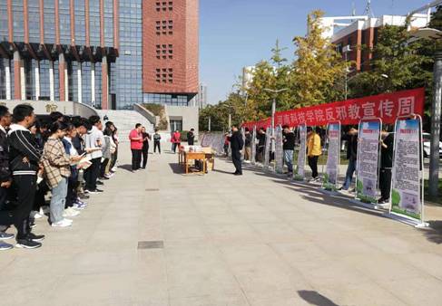 10月30日上午,由红旗区委政法委、洪门分局社区大队、洪门镇综治办和我校党委宣传部、保卫处联合主办的反邪教宣传周启动仪式在我校东区启智广场举行。各级志愿者及我校各学院学生代表共500余人参加了此次活动。