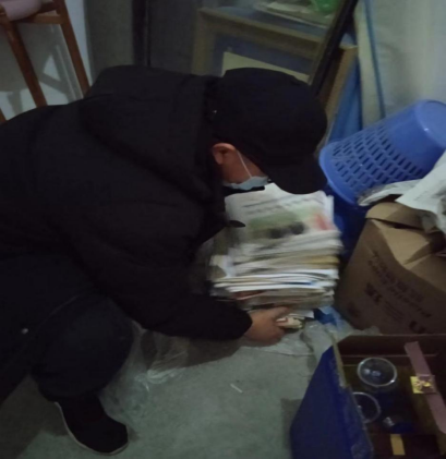 清理家属楼内堆放的杂物