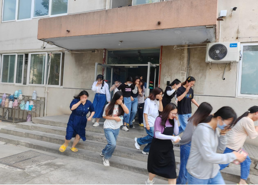 一是与园艺园林学院联合举行了一场“火灾逃生”安全疏散演练。一阵急促响亮的警报声拉开了本次消防演练的帷幕。听到警报声,参演师生临危不乱,立刻到达指定岗位,辅导员带领学生弯着腰、猫着步,捂住口鼻,沿着预案指定的逃生路线快速前行,有序到达指定的安全地带,学生干部随即清点现场人数,层层向上级报告人员撤离情况。