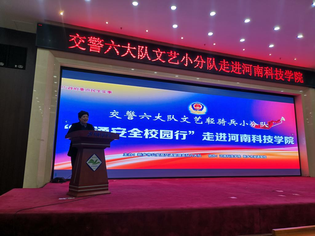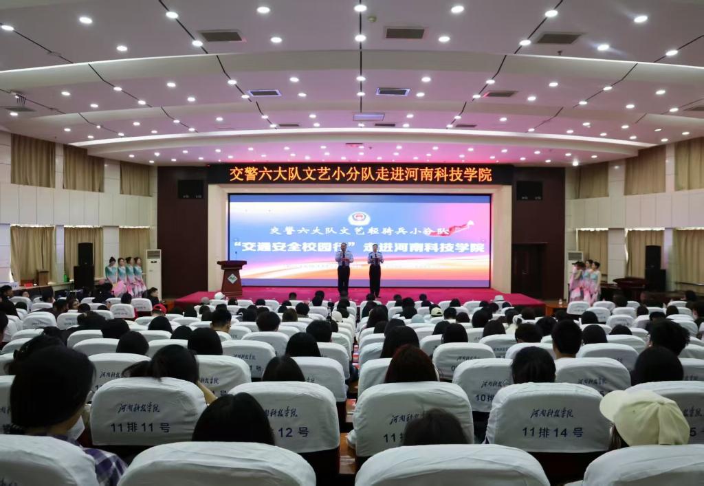 4月11日下午,新乡市交警六大队文艺轻骑兵小分队走进我校,在办公楼308报告厅举办了一场别开生面的交通安全宣讲进校园活动,为全校师生带来了一场集知识、趣味、艺术于一体的交通安全盛宴。