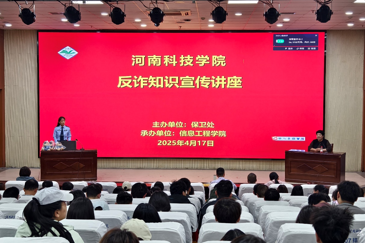 为增强师生防范诈骗意识,提升识诈、防诈、反诈能力,营造安全、和谐的校园环境,4月17日上午,我校邀请新乡市红旗区公安分局郑雪警官开展反诈知识宣传讲座,全校辅导员及近300名学生参加。讲座由保卫处处长刘克平主持。