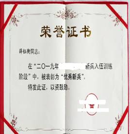 8.雷霆,男,艺术学院2015级视觉传达专业学生,现服役于中国人民解放军南部战区某部。在新兵连训练期间表现突出,被评为“2020年度新兵专业训练先进个人”。