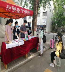 6月初,我校应届毕业生分批返校办理毕业离校手续,我们充分利用这个黄金时段展开强大的宣传阵势:印制6000份征兵宣传页逐一发放到毕业生手中,在醒目位置摆放了征兵宣传展板,在主干道上悬挂了征兵宣传标语,通过教学学院辅导员微信群或微信公众号等网络平台转发了大学生征兵优惠政策、征兵体检标准等内容;学校武装部建立了“科院2020年征兵工作群”,公布了征兵咨询电话,受理学生及家长咨询电话400余次、网络资讯千余条,宣传工作实现了全覆盖、无死角。