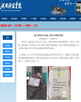 二是在2019年应征入伍的大学生新兵连结束后,我们及时跟踪了解新入伍同学在部队训练生活中点点滴滴,撰写发表了《新兵小赵:三尺哨台,让我悟到了军人的意义》、《新兵训练挥汗如雨,获奖喜讯频传校园》等新闻报道。