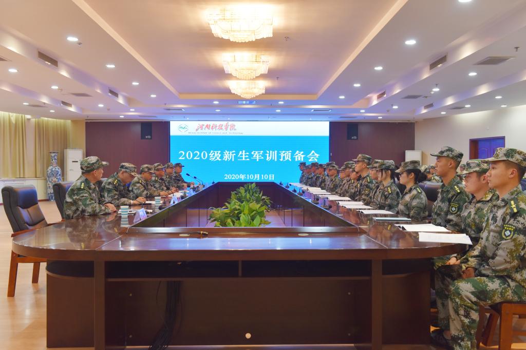 10月10日下午,我校在行政楼206会议室召开了2020年新生军训预备会。学生处处长、党委学工部部长翟居怀,保卫处处长、党委武装部部长刘明鹏等军训团领导班子成员以及武装部科级以上干部、全体帮训教官和负责新生军训的辅导员等100余人参加了会议。会议由保卫处副处长、党委武装部副部长申万胜主持。